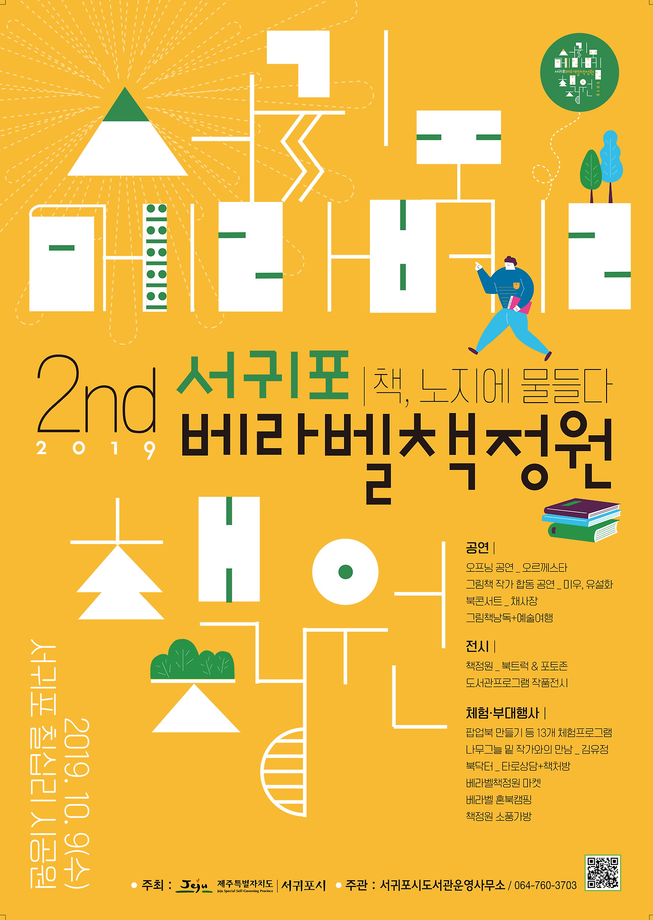 제주의 자연이 살아 숨 쉬는 서귀포 칠십리 시공원에서 '2019 서귀포 베라벨 책정원'이 열립니다. 책을 좋아하거나 책과 가까워지고 싶은 분들이라면 누구나 참여할 수 있는 행사인 베라벨 책정원은 북콘서트, 그림책낭독, 북트럭&포토전, 팝업북 만들기 등 13개의 체험 프로그램까지 만날 수 있는 행사인데요! 독서의 계절, 가을을 이곳에서 즐겨보세요!