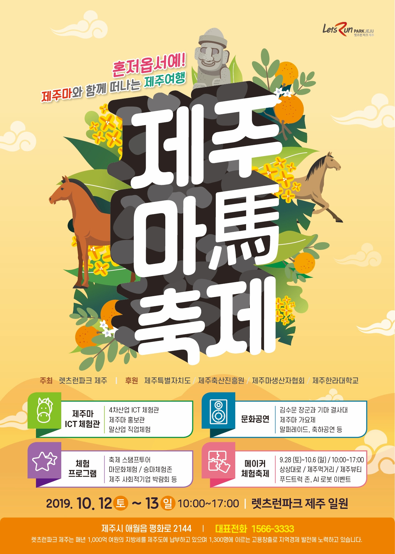 제주특별자치도와 한국 사마회는 천고마비 계절인 10월을 '제주 말(馬) 문화 관광의 달'로 지정했는데요! 제주 말 문화 관광의 달을 맞이하여 렛츠런파크 제주에서는 제주마축제를 개최한다고 합니다. 제주마체험관, 제주마 가요제, 말퍼레이드, 축제 스탬프투어, 푸드트럭존 등 다양하게 준비된 프로그램으로 제주마를 만나보세요!
