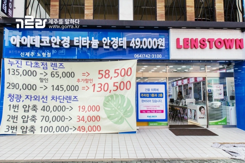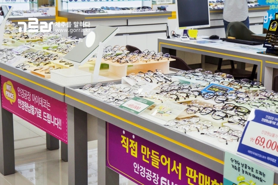 <아이데코 노형점>은 신제주 이마트 바로 맞은편에 위치한 안경점입니다. 대로변에서 새파란 간판을 찾으면 되는데요. 안경원과 렌즈타운을 함께 운영 중이어서 다양한 안경과 렌즈 제품이 구비돼 있습니다.