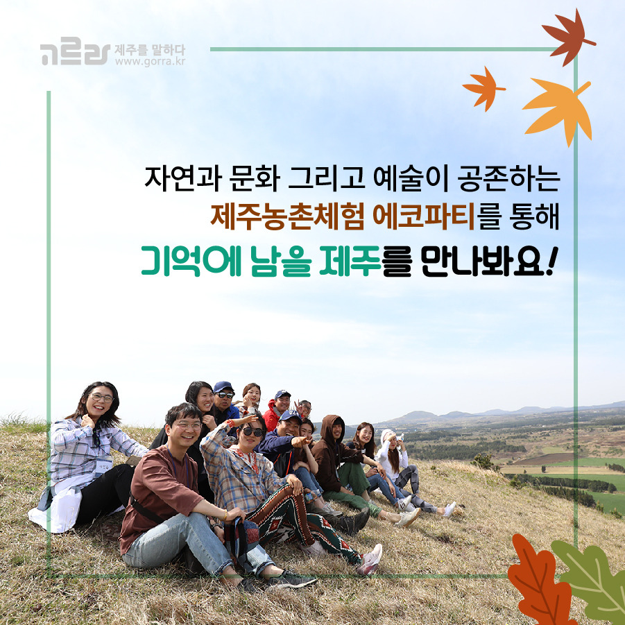 여행하기 좋은 계절 가을을 맞아 제주 자연 그대로를 느끼고 체험하는 <에코파티>가 펼쳐지고 있습니다. 뻔한 일정의 패키지, 틀에 박힌 관광코스가 아닌 제주의 본모습을 담은 알찬 여행 프로그램으로 가득 찬 <에코파티>에서 가을을 만끽해보세요!