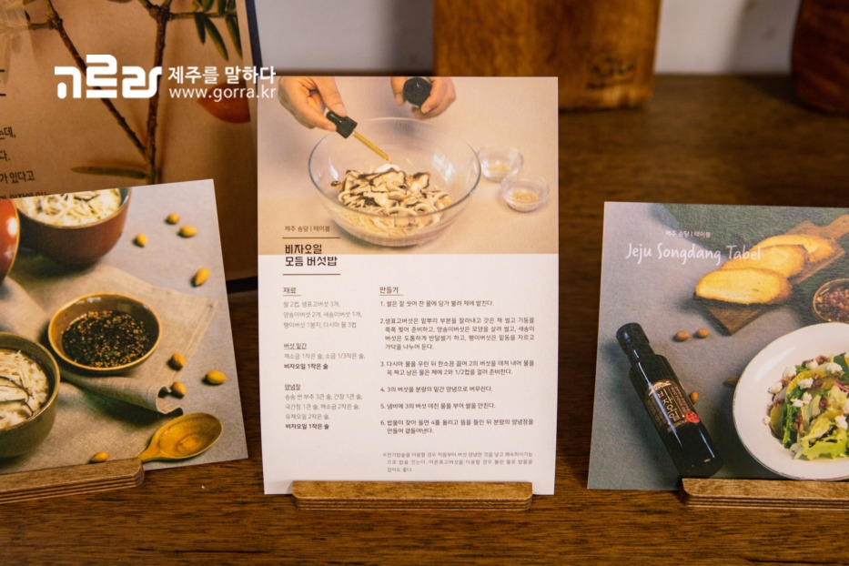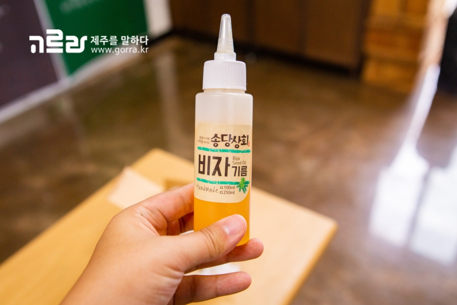 송당상회 비자기름은 저온 압착 방식으로 짜 비자 특유의 향과 맛이 살아있는데요. 요리에 사용하거나 피부 진정과 보습에도 활용 가능합니다. 이밖에도 고령자도 부담 없이 먹거나 바를 수 있는 동백기름, 요리 활용도가 높은 유채기름을 비롯해 더덕, 메밀가루, 고사리, 건표고버섯 등을 판매하고 있습니다.