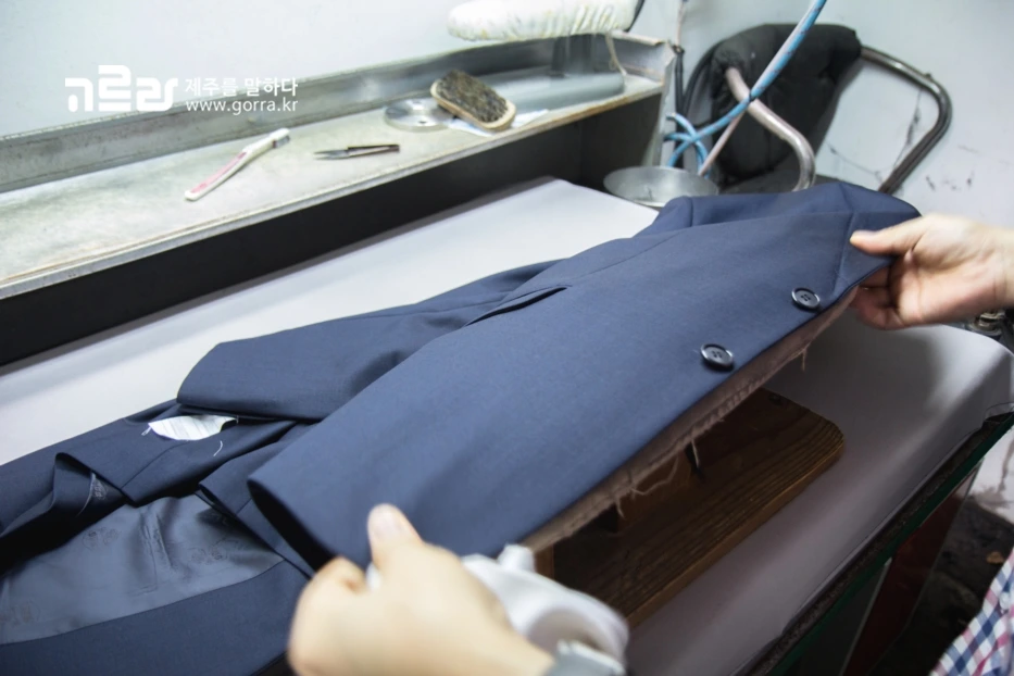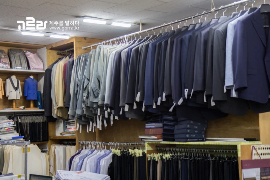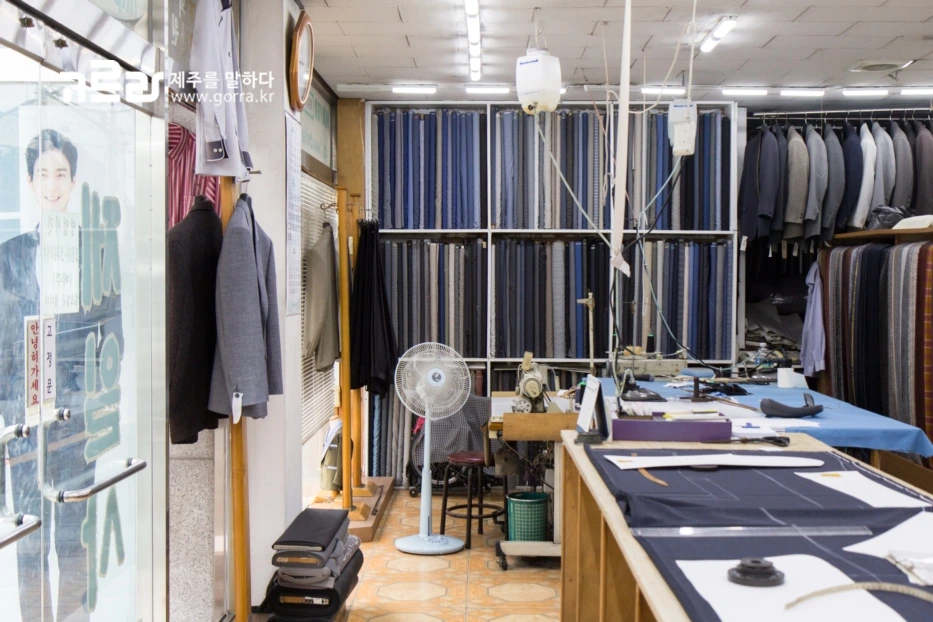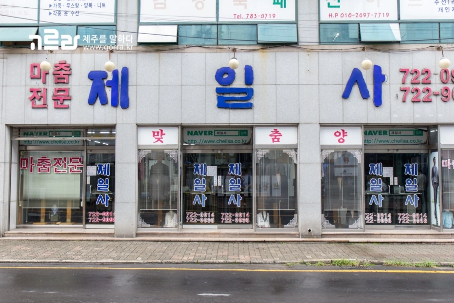 제주시청로 제주시농협 건물 맞은편 골목에 있는 <제일사>는 도내에서는 거의 유일하게 한 자리에서 30년 이상 영업한 남성복 전문 맞춤 정장집입니다. 아침 9시가 되면 문을 열어 오후 9시까지 손님을 맞습니다.