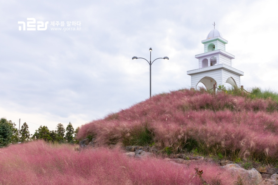 핑크뮬리 성지를 찾는다면 제주 허브동산은 어떠세요? 늦더위와 태풍의 영향으로 조금 늦게 만개한 핑크뮬리가 아직도 선명한 핑크색을 띠고 있어 사진 스폿으로 좋습니다. 핑크뮬리 언덕 위 흰 집 한 채가 그림 같은 풍경을 완성합니다.