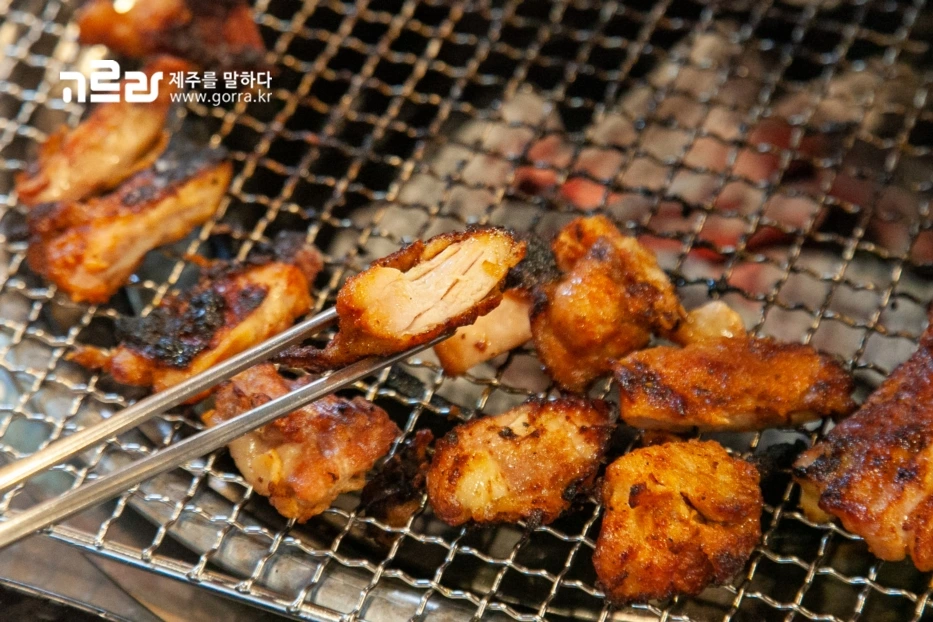 촉촉 쫄깃한 제주닭을 숯불갈비로 즐겨요