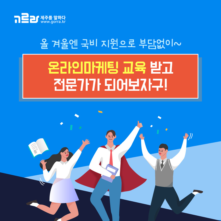 신청은 내일배움카드대상자확인(고용센터) → 내일배움카드 직업훈련 포털 고용노동부 HRD-NET 사이트 → 교육신청 → 노동부 상담 후 판단 → 발급신청 → 고르라학원 전화접수 및 방문접수 순으로 이뤄집니다. 자세한 내용은 고르라 주식회사 교육사업부 (☎1577-2296, 내선 2번), 카드 신청 문의는 제주고용센터(☎064-710-4446)로 하시면 된답니다!