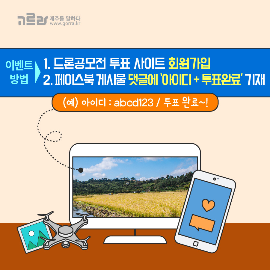 투표를 끝낸 뒤에는 고르라 페이스북 이벤트 게시글에 드론 사진 공모전 사이트 아이디와 투표 여부를 댓글로 남겨주시면 된답니다.