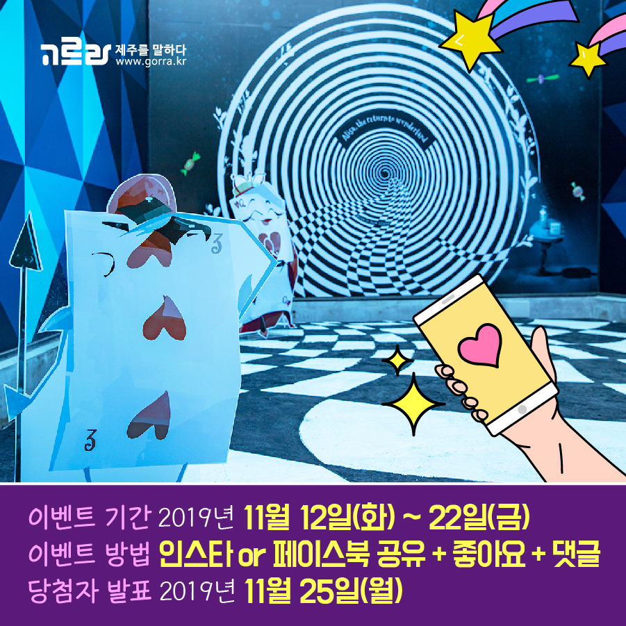 이와 함께 오픈을 기념해 2019년 11월 12일(화)부터 22일(금)까지 SNS 입장권 이벤트가 열리고 있습니다. 고르라 인스타그램 또는 고르라 페이스북 채널에 올라온 원더랜드 이벤트 게시물을 공유 또는 리그램 + 좋아요 + 댓글 달기 하면 무료 입장권이 팡팡!