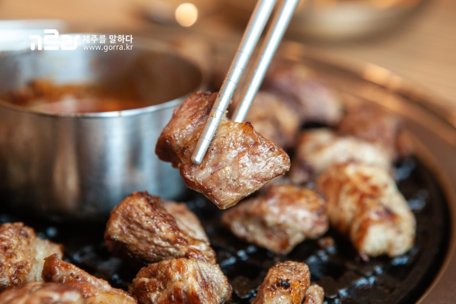흑돼지 근고기는 질이 뛰어난 고기를 사용하기 때문에 차갑게 식어도 육즙이 살아있으며, 오래도록 쫀득한 식감을 자랑합니다. 고기 자체에 육즙이 가득해 씹을수록 진한 감칠맛을 느낄 수 있답니다. 흑돼지 근고기 외에도 제주한우 갈빗살+살치살 메뉴도 인기입니다.