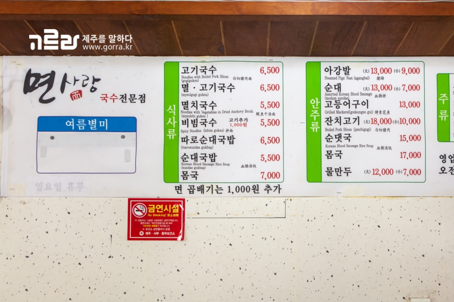 저희 고르라 회사는 제주시청에 있는데 저희 회사에서 가장 가까운 곳에 면사랑이 있습니다. 고르라에 입사하고 직원들과 같이 처음 갔던 곳이었죠. 영업시간은 모르겠어요. 하지만 딱 1번 빼고는 문 닫는 경우는 없었답니다. 한 번은 문이 잠겼었는데 그곳에서 모임을 했었기 때문에 못 들어갔었죠.ㅠ
