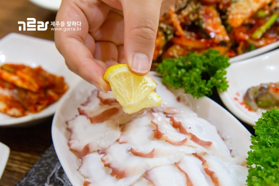 숙회는 야들야들 부드럽게 익힌 문어 본연의 맛을 가장 잘 느낄 수 있는 메뉴이지요. 문어가 지닌 신선한 향미와 상큼한 레몬이 어우러져 제주산 돌문어의 매력을 깊이 있게 만끽할 수 있습니다.