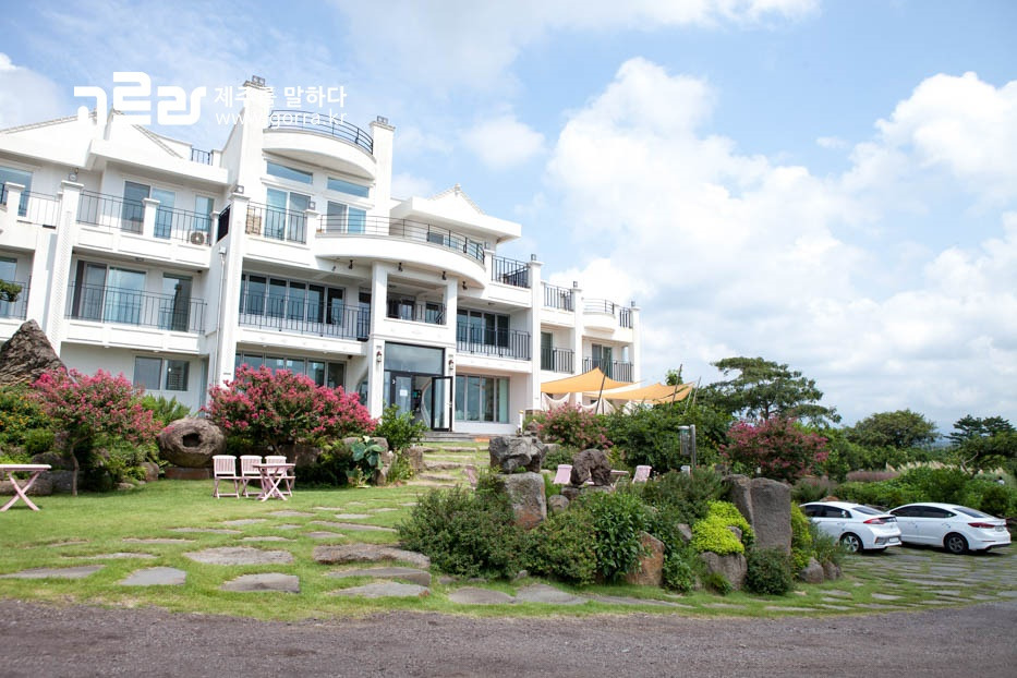 산방산 근처 덕수리에 위치해 있는 카페 마노르블랑. 구부러진 좁고 높은 언덕길을 올라가면 마치 유럽 어귀에 온듯한 느낌을 주는 산방산 카페 마노르블랑이 있습니다. 커다란 궁전 같은 외관의 마노르블랑은 넓은 정원을 보유하고 있으며 예쁜 꽃이 가득한 정원이 아름답기로 유명해 요즘 수많은 카페들 중에서도 핫한 곳으로 손꼽히고 있는 곳이랍니다.