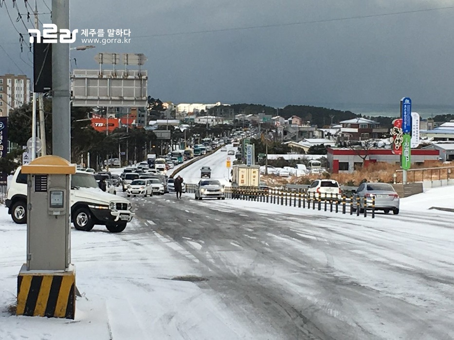 일부 구간에는 도로변에 모래주머니나 염화칼슘이 준비되지 않아 눈이 얼어붙어 빙판길이 된 도로에서 작은 사고들이 일어나기도 했으며, 제주시와 서귀포시를 잇는 버스들의 운행이 늦어지고 있어 도로에 몇십분씩 정체되어 있기도 한다는 소식입니다.