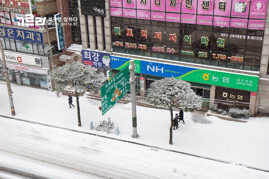 따뜻한 제주도, 오랜만에 펑펑 내린 눈이 마을 돌담마다 쌓이고 있습니다. 누군가에겐 아름답고, 또 누군가에겐 번거로운 날인 눈 오는 날. 펑펑을 넘어 쏟아지는 눈발 사이로 출퇴근길은 고단하지만, 창밖으로 보이는 새하얀 세상은 제주도에서는 보기 힘든 풍경이니, 잠시 고담함은 잊고 눈 오는 제주의 풍경에 빠져보시는 건 어떨까요?