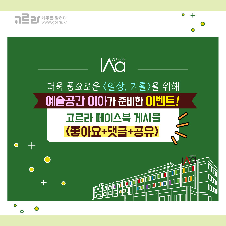 어느새 캐럴이 들려오는 연말입니다. 바쁜 일상을 잠시 내려놓고 가족, 연인, 친구와 함께 시간을 보내보는 건 어떨까요? 예술공간 이아에서 마련한 <일상, 겨를> 예술축제에서 행복한 연말 추억을 더하시기 바랍니다.