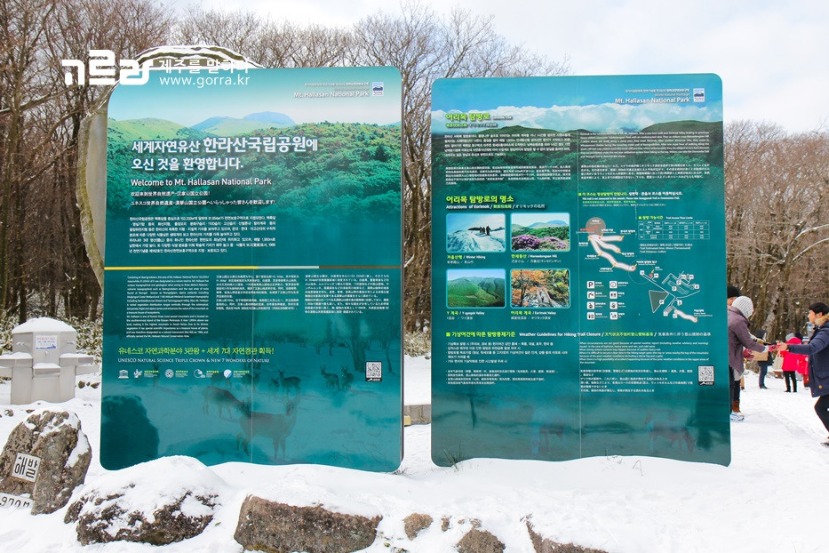 영실 코스 다음으로 가장 짧은 어리목 탐방로! 7개의 코스 중 눈이 왔을 때 가장 아름답다고 알려진 어리목은 난이도 중 코스로 많은 사람들이 찾는 곳이기도 한데요~