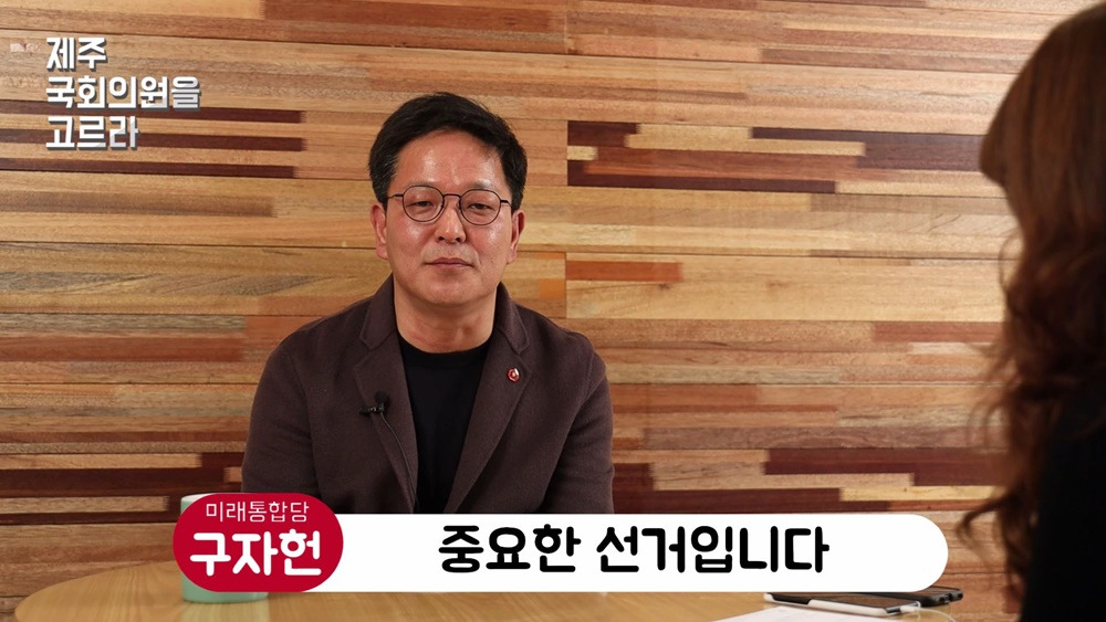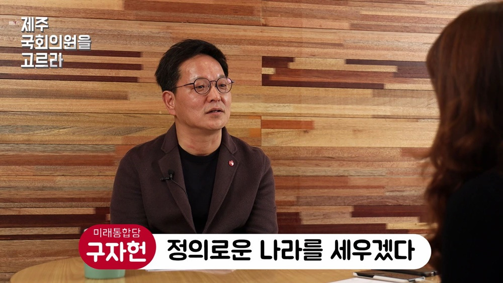 오는 4월 15일 치러질 제21대 국회의원 선거는 2020년 5월부터 2024년 5월까지 국민의 목소리를 대신할 일꾼을 뽑는 중요한 선거입니다. 도민 여러분의 선택을 돕기 위해 고르라제주는 제21대 4.15 총선 특집 ‘제주 국회의원을 고르라’를 기획하고, 예비후보들을 만나 각오와 공약을 들어봤습니다. 두 번째 주인공은 제주시 갑 미래통합당 구자헌 예비후보입니다.