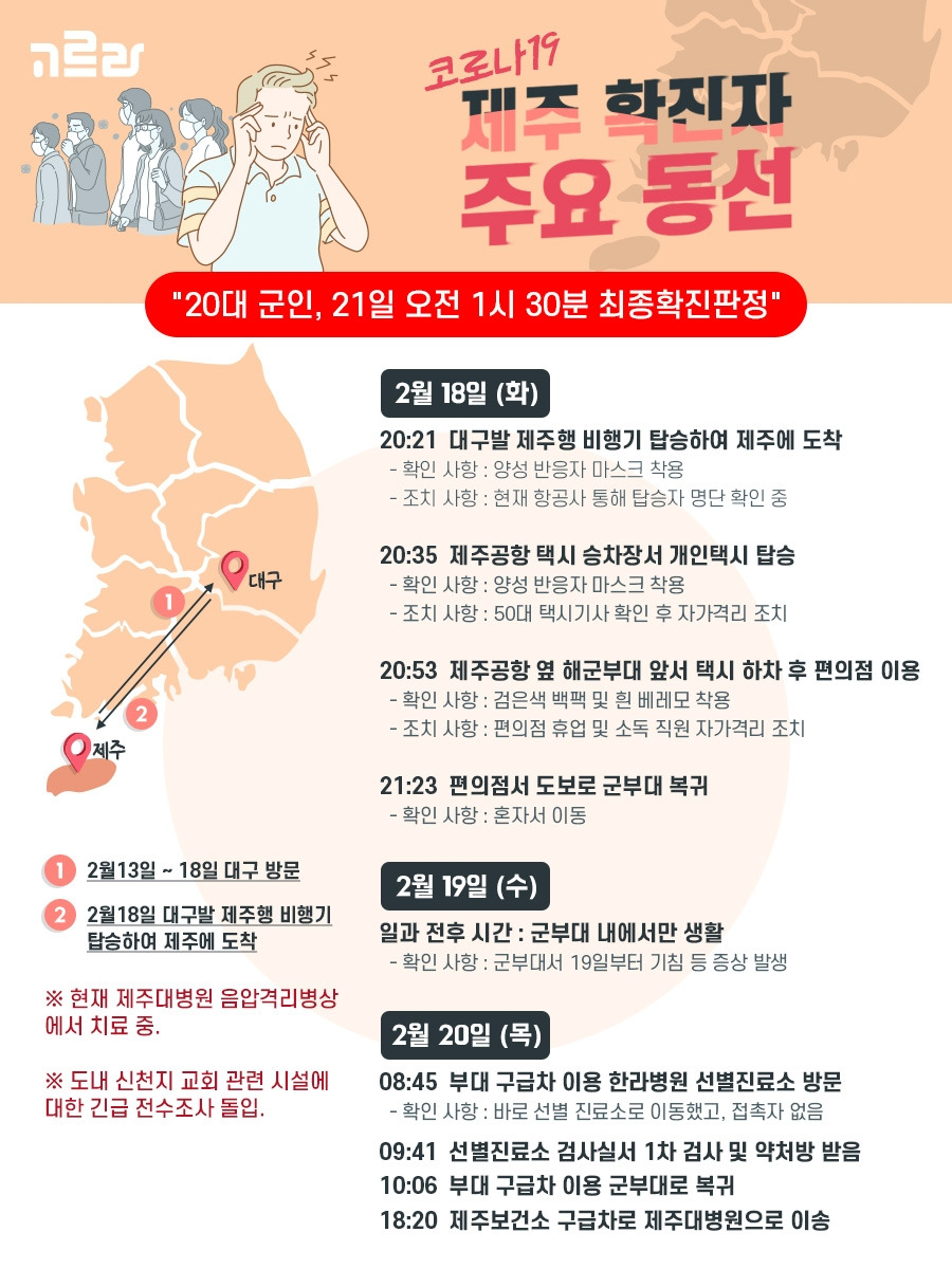 <코로나19 제주 확진자 동선 및 조치 사항>