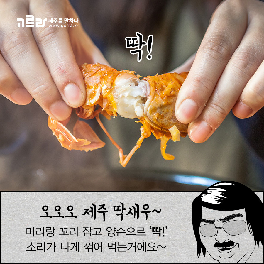 바당몬딱이 안에 들어있는 딱새우는 다른 새우들과는 다르게 껍질이 아주 단단하답니다. 그래서 처음 보는 사람들은 어떻게 먹어야 할지 몰라 그냥 안 먹는 사람들도 있다는 사실 ㅠㅠ 머리 부분과 몸통을 양손으로 잡고 힘차게 딱! 소리가 날 때까지 꺾어주세요! 꼬리까지 스르륵 새우살이 빠져나온답니다~
