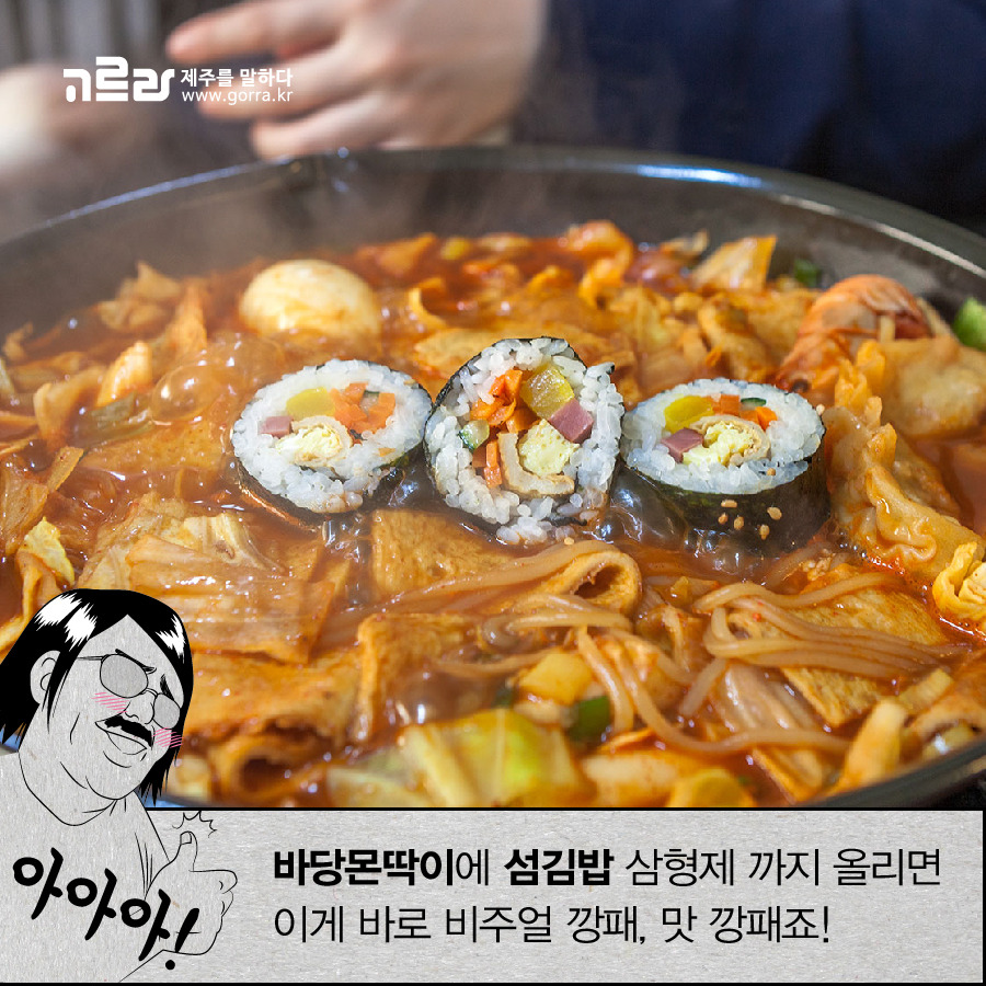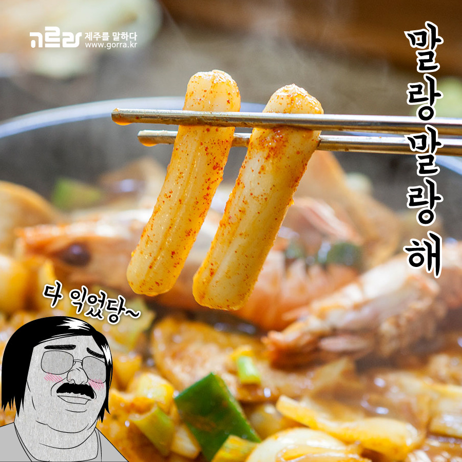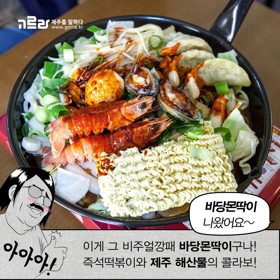 '바당몬딱이'는 제주섬분식의 즉석떡볶이 이름인데요. '바당'은 제주방언으로 바다를 '몬딱'은 모두다_를 뜻하는 제주어로 바다를 모두 담은 떡볶이라는 뜻이 되겠지요?