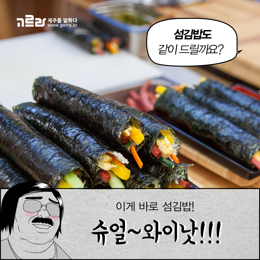 떡볶이와 함께 먹으면 환상의 궁합을 자랑하는 섬김밥! 섬김밥은 따뜻한 밥에 단무지, 햄, 당근, 오이, 계란을 넣어 돌돌 말아놓은 기본 김밥이랍니다. 특별한 재료가 들어간 것은 아니지만, 깔끔한 맛으로 떡볶이와는 둘도 없는 조합을 보여주고 있는데요~