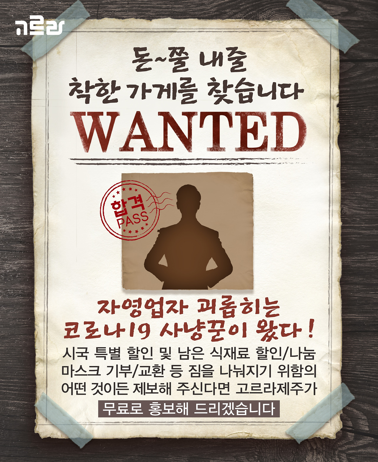 코로나19 확산에 따라 소비위축으로 힘든 나날을 보내고 있는 제주지역 자영업자·소상공인들이 수도 없습니다. 위기 극복을 위한 여러분의 힘이 절실합니다. 고르라제주는 선한 영향력의 주인공이 되어줄 여러분의 목소리를 기다립니다. 시국 할인, 남은 식재료 할인/나눔, 마스크 기부/교환 등 상생을 위한 여러분의 용기를 전해주세요. 돈쭐내고 싶은 착한 가게 제보도 환영입니다. 코로나19 위기, 상생으로 이겨냅시다.