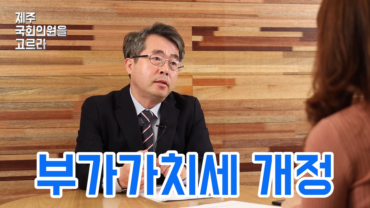 법률 제정을 통해 국민의 민생경제 문제를 해결하는 것이 국회의원의 가장 중요한 임무라고 봅니다. 만약 국회의원에 당선된다면 고치고 싶은 법이 3가지 정도 있습니다. 물론 4.3특별 법이라든가 제주도 개발 특별법은 제주도민, 제주도 국회의원으로서 당연히 해야 할 것이고요. 그 외에 첫 번째로 부가가치세를 개정하고자 합니다. 간이과세자의 부가세 면제 한도를 4800만 원에서 9600만 원으로 상향하는 내용으로 고치고 싶고요.