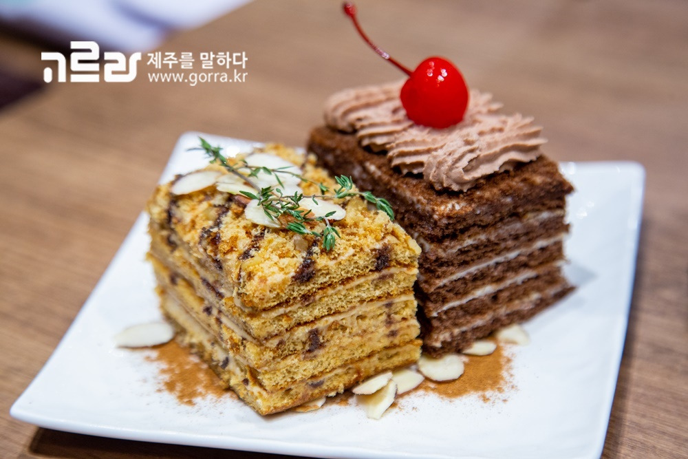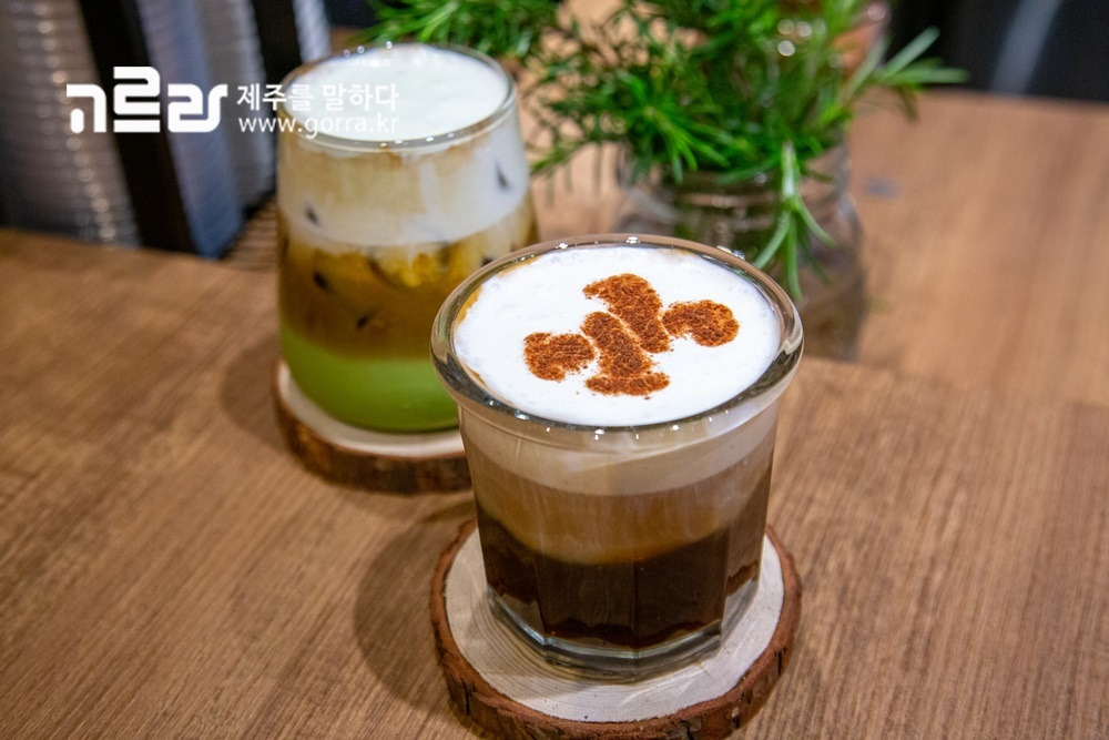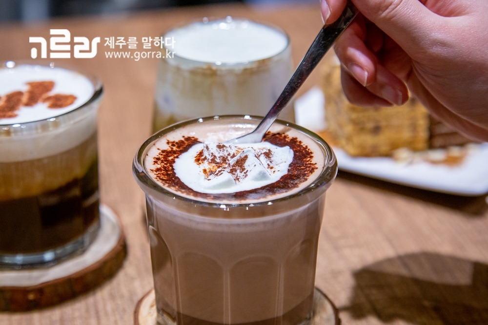 다양한 음료 중 제주에서 재배한 100%말차를 이용한 진한 돌담에스프레소와 달콤한 휘핑이 만난 '카페슈렉', 이곳만의 특별한 아인슈패너 '빈커피', 따뜻한 초코라떼 위에 마시멜로우가 담긴 '퐁당멜로우'는 이곳에서 놓칠 수 없는 시그니처 메뉴!