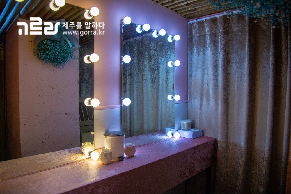 이곳의 마지막 매력은 바로 파우더룸! 셀럽들의 필수 사진스팟! 반짝이는 조명을 배경으로 사진을 남길 수 있는 공간인데요. 이곳에서 빛나는 우리의 추억 저-장★