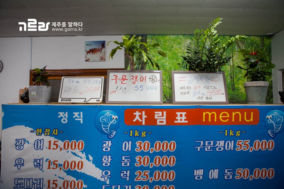 니모회센타는 서귀포시 신시가지인 서호동에 위치하고 있습니다. 매장 안에 들어서면 간단한 차림표와 포장을 기다릴 수 있는 최소한의 공간만 마련되어 있는데요. '정직 차림표'라고 쓰여있는 만큼 저렴한 가격으로 맛 좋은 회를 즐길 수 있답니다.