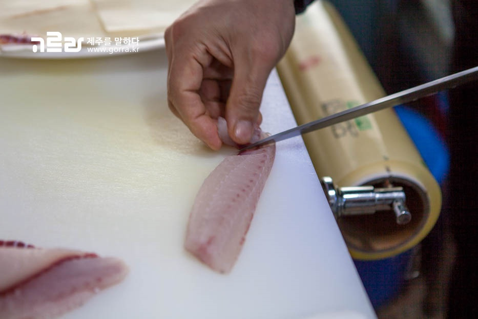 전문가인 사장님의 손길을 거치고 나면 금세 뽀얗게 드러나는 활어회를 만날 수 있습니다~ 손질하는 장면들도 직접 확인할 수 있으니, 포장 전문이라고 해서 비위생적이라거나 무게를 속인다거나 그런 일은 노놉!