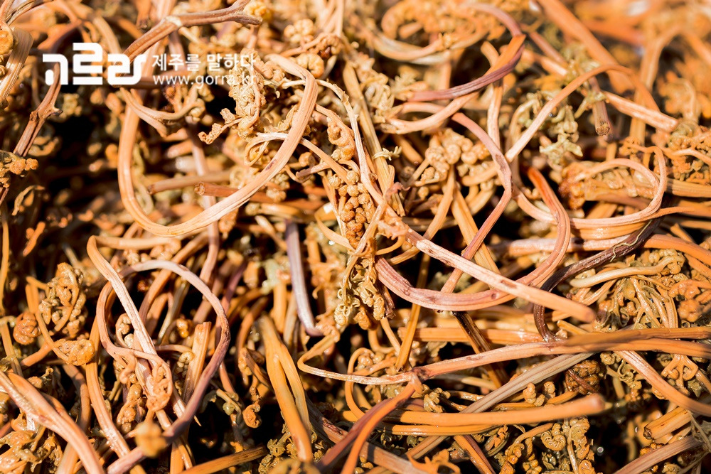 청정 제주 곳곳에서 흔히 볼 수 있는 고사리는 예로부터 '귈채'라 불리며 임금에게 진상을 올릴 정도로 쫄깃하고 맛과 향이 뛰어났다고 하는데요. 비타민 B1, B2, D 및 식이섬유를 다향 함유하고 있어 변비 예방에 좋으며 무기물이 풍부하여 치아와 뼈를 튼튼하게 해 준답니다. 유독성분이 있기 때문에 섭취 시 반드시 물에 잘 우려내는 거 잊지 마세요!