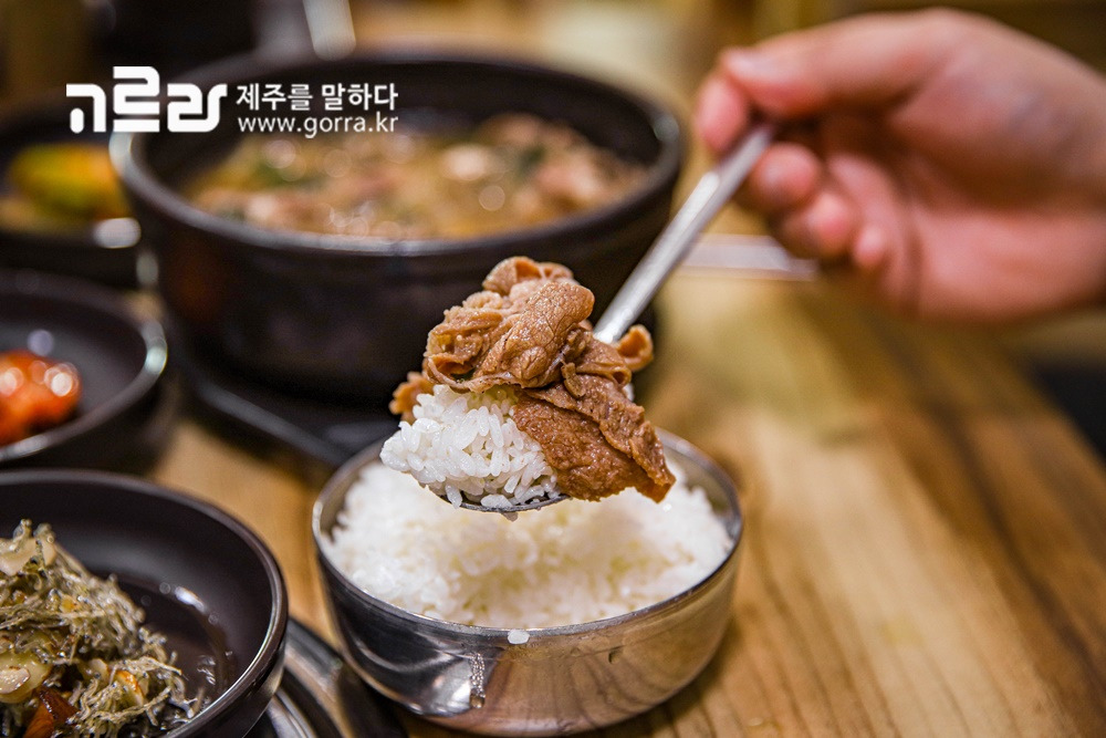 이밖에도 제주도민 맛집에서 만나는 메쥬 중 푸짐한 양을 자랑하는 불뚝배기는 달달 듬삭하게 즐길 수 있어 남녀노소 모두가 좋아하는 메뉴이며, 그 외에도 차돌된장찌개, 불고기 전골 등 다양한 메뉴를 만날 수 있답니다.