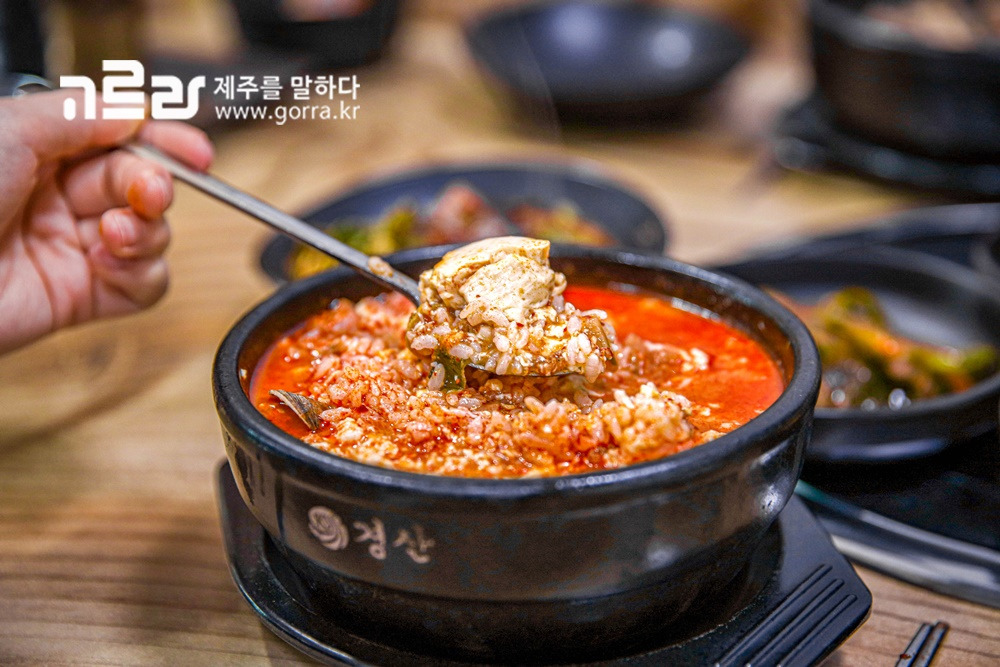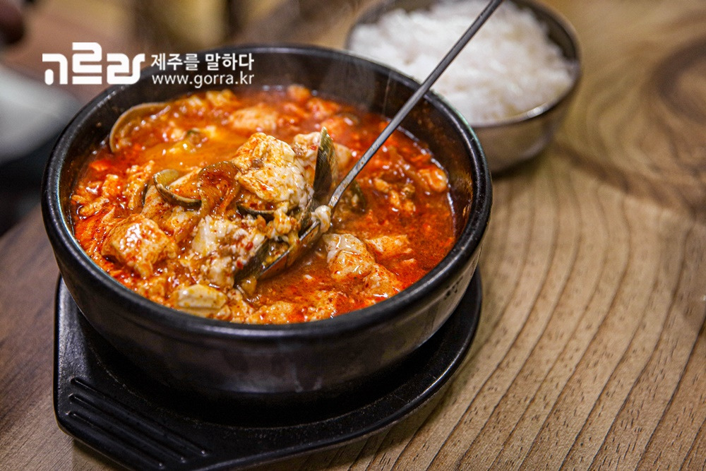 제주도민 맛집인 이곳에는 전복뚝배기만큼이나 많은 사람들의 입맛을 저격하는 메뉴가 있답니다. 바로 순두부찌개!인데요. 뚝배기에 흘러 넘 칠 만큼 푸짐하게 채워진 순두부와 얼큰한 국물이 환상의 조합을 이루는 메뉴랍니다.
