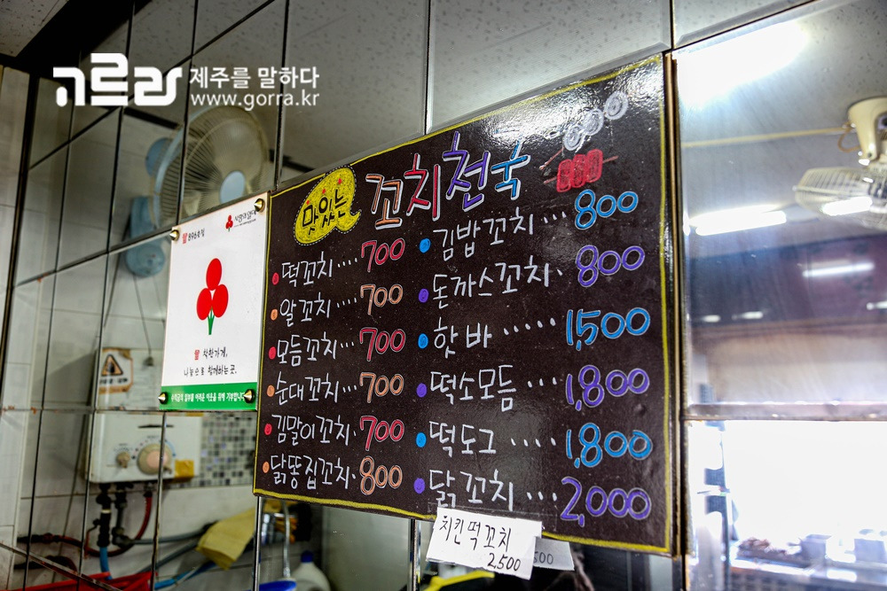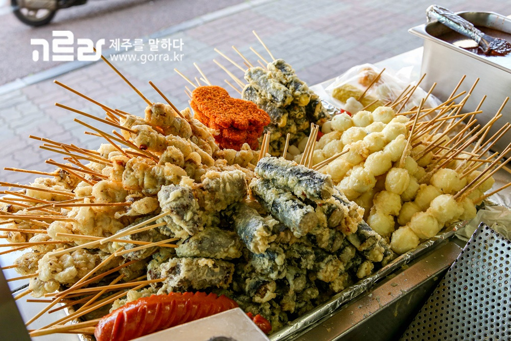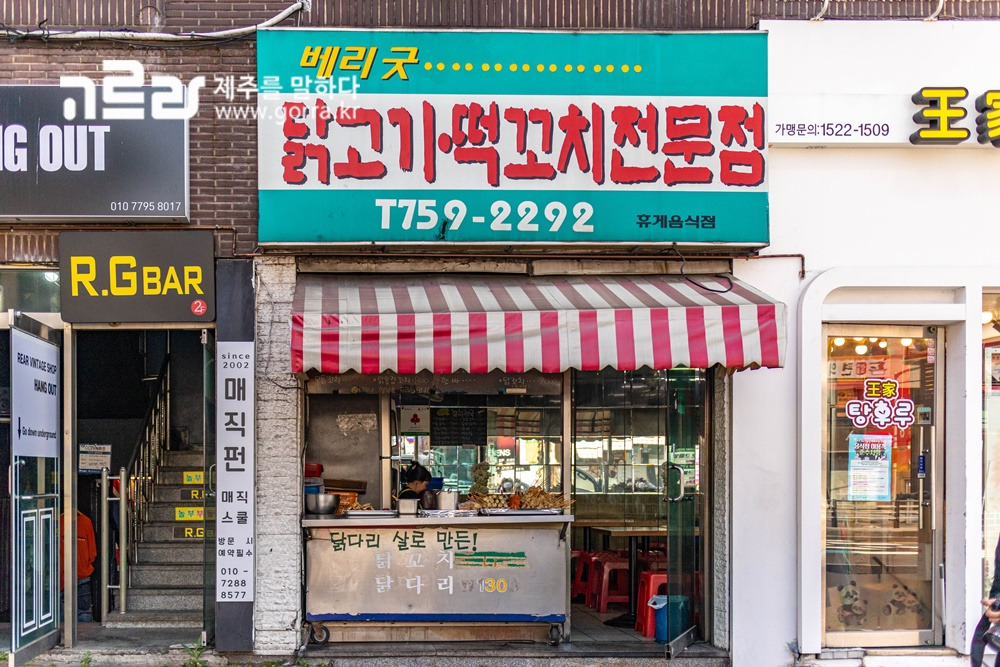 제주시청 맞은편, 네온사인 가득한 거리에서 유일하게 담백한 모습을 한채 한자리를 지키고 있는 이곳은 '베리굿닭고기떡꼬치전문점' 인데요. 근처에 상가가 없던 시절부터 현재까지 약 25년 동안 이곳에서 도민들에게 배고플 때 생각나는 간식집이 되어주고 있는 곳이랍니다.