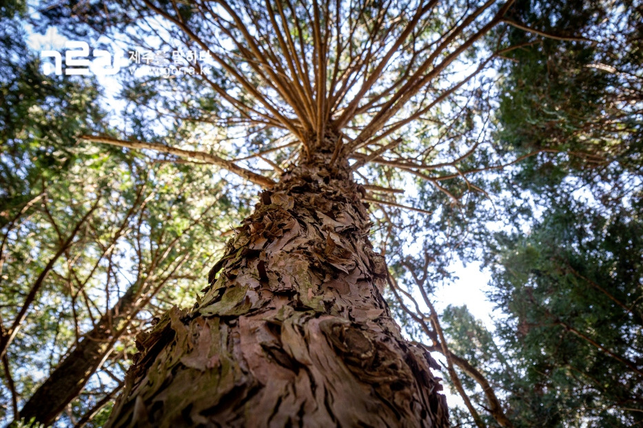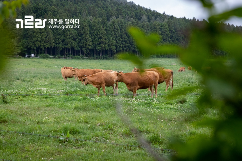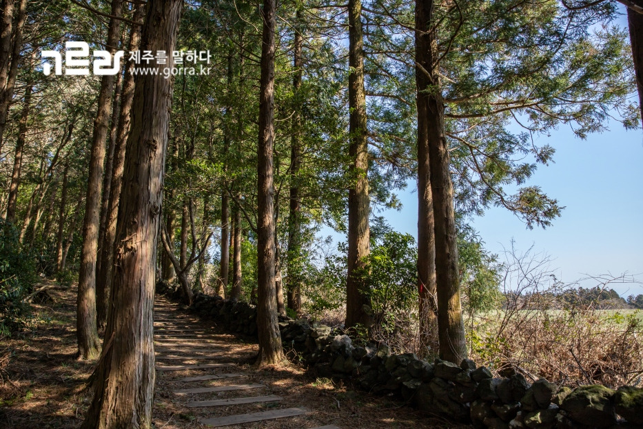 오름 입구로 가는 길에는 소방목지가 있다. 푸른빛 초원 위에서 시간과 동떨어진 채로 풀을 뜯는 소들을 보고 있노라면 어느새 입구다. 입구에 들어선 뒤에도 나즉나즉한 목장 돌담을 따라 조금 더 걸어야 본격적인 오름길이 시작된다. 디딤목이 가지런한 삼나무 숲길에 당도하면 피톤치드의 상쾌함에 포근히 둘러싸인다.