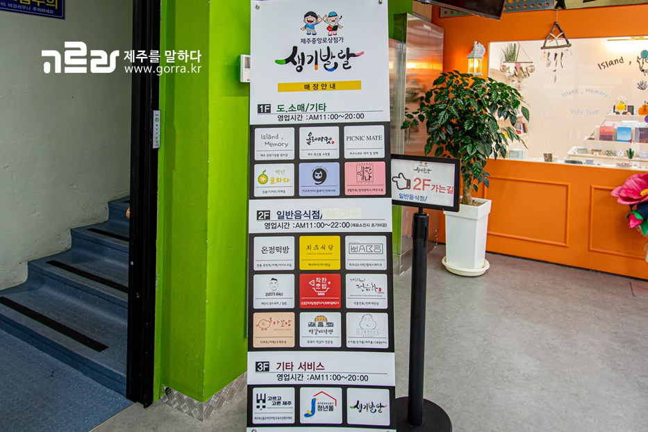 2018년 8월 중소벤처기업부 공모사업 추진으로 시작된 생기발랄 청년몰. 제주시 원도심 중앙로에 자리 잡고 있는데요. 동문시장 6번 게이트로 가면 쉽게 찾을 수 있답니다.