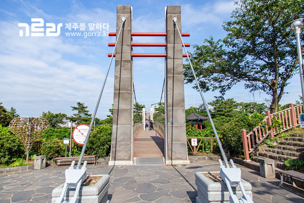 공항에서 약 10분 거리에 있는 용연구름다리! 이곳은 제주 용담 1동과 2동 경계에 있는 못으로 용이 살았던 연못이라 해서 용연이라는 이름이 붙여졌다고 하는데요. 가뭄이 들어도 물이 마르지 않아 이곳에 살고 있는 용이 승천하여 비를 내리게 했다는 전설이 내려오고 있답니다.