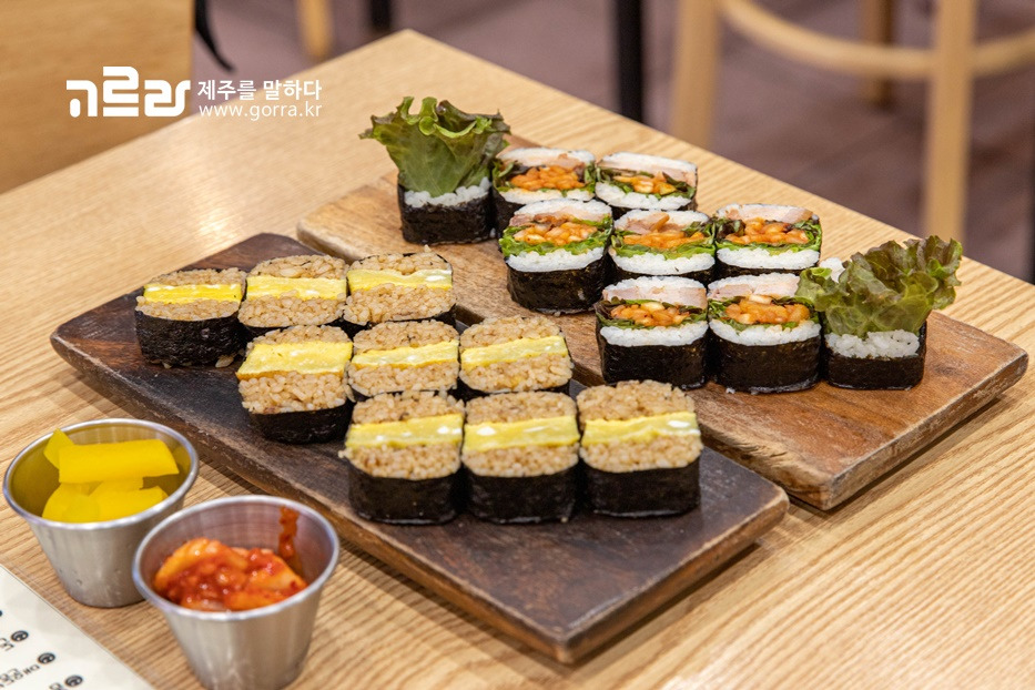 김밥류는 돔베김밥과 전복김밥 두 가지! 돔베김밥은 돔베고기와 김치, 쌈채소가 가득해 든든하게 한 끼 해결할 수 있답니다. 전복김밥은 매일 아침 정성껏 손질한 전복으로 만들어 신선도가 가득! 고소함은 기본입니다.