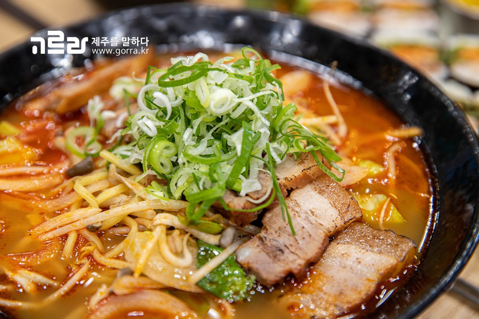 갓 삶은 돼지고기를 나무 도마에 얹어 덩어리째 썰어 먹는 제주도 지역 음식인 '돔베'. 이곳에서는 돔베고기를 넣어 만든 돔베라면을 만날 수 있는데요. 한입 할 때마다 깊으면서도 담백한 맛이 느껴진답니다.