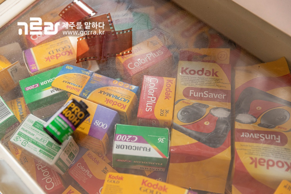 '직영점 쇼룸에서는 필름 구입, 인화+스캔 등이 가능하며, 필름로그 제주점에선 다양한 필름과 빈티지 필름카메라, 일회용 카메라 등을 합리적인 가격에 구입할 수 있는데요. 덕분에 여행객은 물론 도민들이 즐겨 찾는 핫플 중 하나이지요.