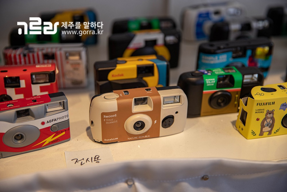 이곳 제주점에선 직접 손본 업사이클 일회용카메라 제품도 만날 수 있는데요. 사용 후 버려지는 일회용 카메라를 재활용한 것으로 제조사, 필름 감도, 색감, 컷 수 등이 다르니 구입 시 참고! 또한, 다 쓴 업사이클 카메라를 전국 필름로그 드롭포인트 중 한 곳에 반납하면 굿즈로 교환해준다고 합니다.