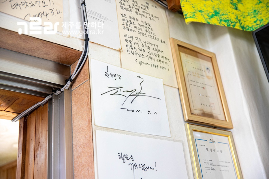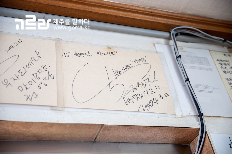허기진 배를 부여 잡고 안으로 들어가자마자 가장 먼저 눈에 띈 것은 온 벽을 도배하듯 붙여져 있던 싸인들! 어떤 분들의 싸인인가 눈여겨봤는데요. 이름만 말해도 알만한 인기 있는 분들도 많이 다녀간 곳이었어요. 어쩌면 여기서 식사하다 연예인을 만날지도 모른다는 생각이..?!