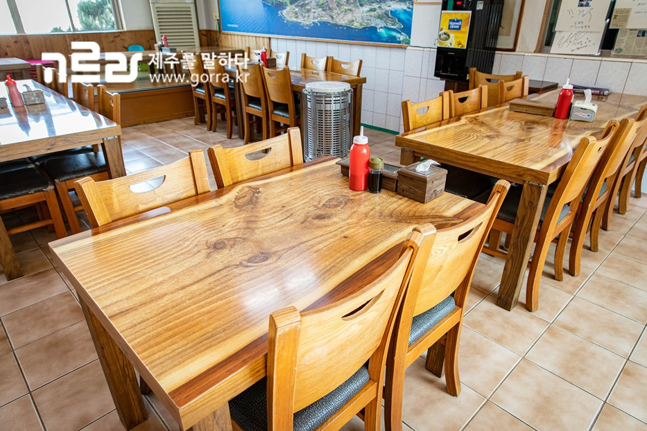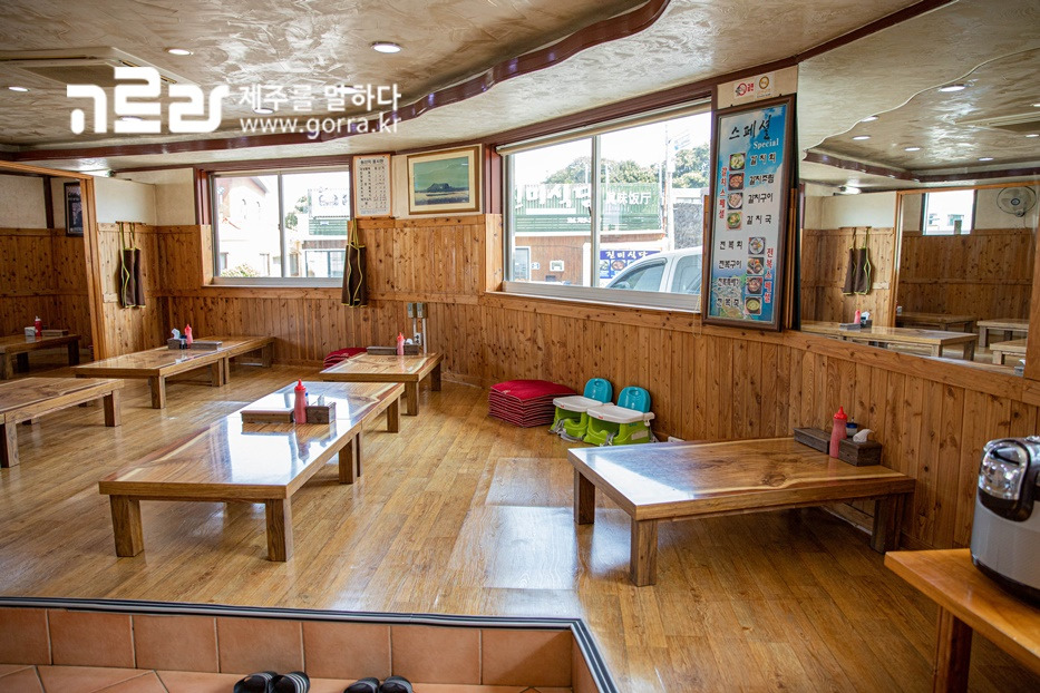 실내는 입식, 좌식, 유아용 시탁 등 다양한 테이블들이 준비되어 있었고, 실내는 깔끔하면서도 향토적인 분위기가 물씩 풍겨 들어서자마자 정감 가는 느낌이 드는 곳이었는데요. 메뉴도 갈치조림부터 뚝배기, 물회, 죽, 성게 미역국 등 다양하게 준비되어 있어서 성산읍을 둘러보다 제주의 맛을 느끼고 싶은 여행객들도 찾기에도 제격인 곳이었어요.