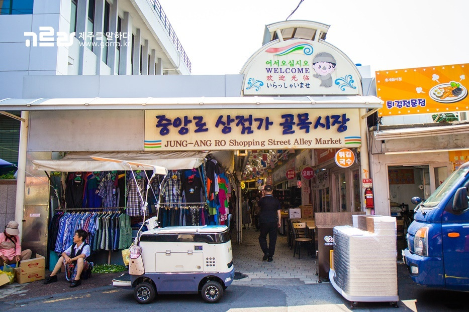 이와 함께 제주한짓골 골목 건너편에는 중앙로 상점가 골목시장이 위치하고 있답니다. 10년 전까지만 해도 동네마다 하나씩은 자리 잡고 있었던 전통시장. 떡집, 분식집, 옷가게, 신발가게, 잡화가게 등 다양한 물건을 판매하고 있으니 함께 둘러보면 좋겠죠?