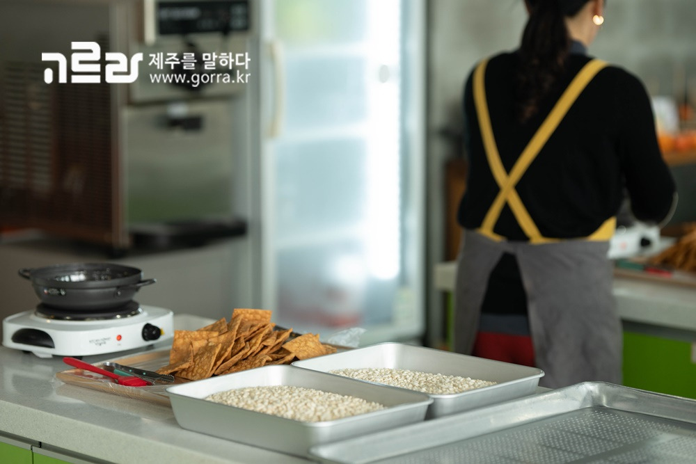 제주도에서 사계절 내내 귤향을 맡을 수 있는 하효마을! 여름에는 푸른 청귤이 가득 열려 더욱 싱그러운 곳인데요. 이곳은 하효마을 부녀회원들이 모여 '하효살롱협동조합'이라는 공동제 조직을 운영하며 감귤을 이용한 만들기, 제주밥상 등을 선보이고 있답니다.
