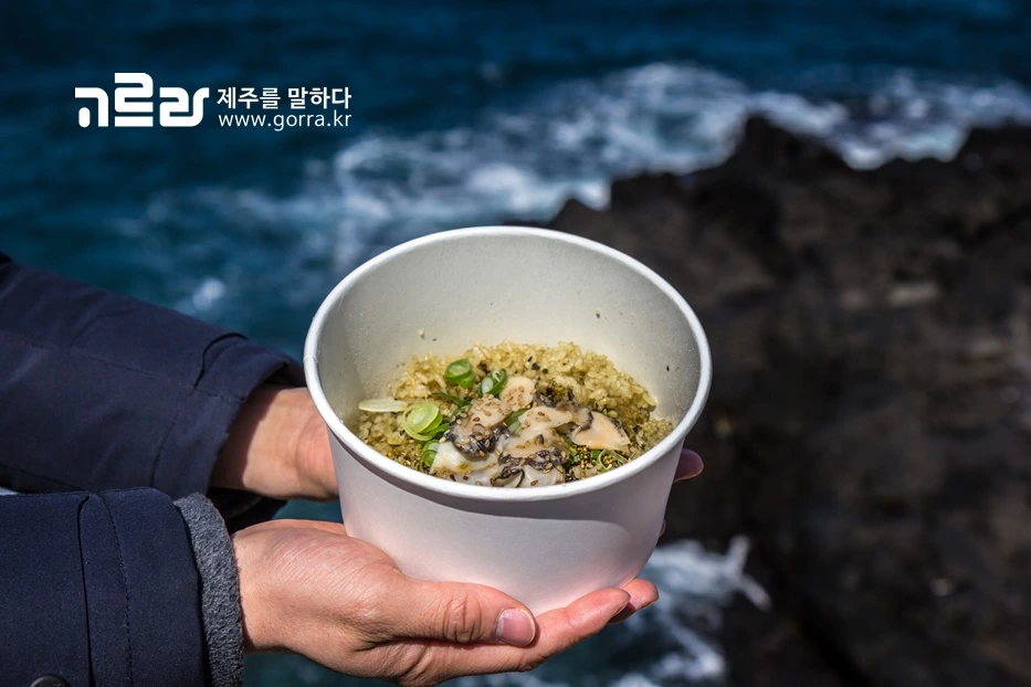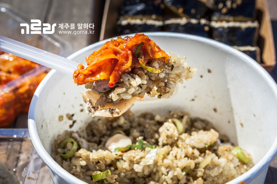 출출한 배를 달래기 제격인 전복컵밥은 제주도의 '게우밥'을 생각하시면 된답니다. 몸에 좋은 영양소가 가득하다는 전복 내장으로 만든 볶음밥인 게우밥은 고소한 맛이 일품인데요,