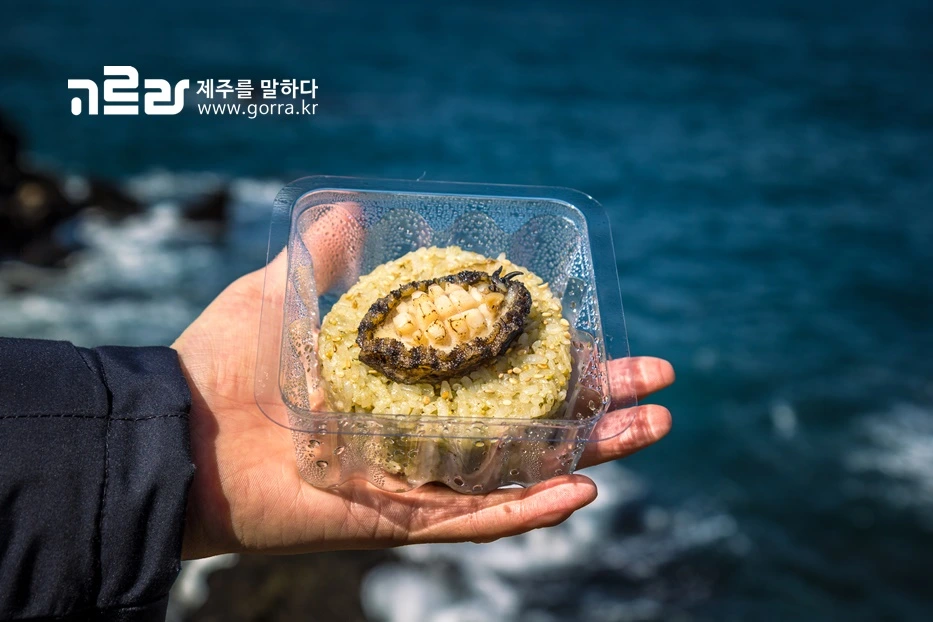 또한 전복 컵밥과는 달리 전복 하나가 통째로 올라가 있는 통전복 주먹밥도 인기 있다고 하는데요, 손바닥 크기로 간단하게 손에 들고 즐길 수 있는 메뉴로 출출한 배를 간단하게 잠재울 수 있어 좋답니다. 맛있는 전복요리가 가득한 제주도 이색 맛집 제주김만복이랍니다. : )