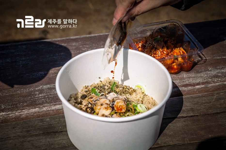 전복컵밥과 함께 먹으면 그렇게 맛있다는 오징어무침은 반찬으로 최고랍니다. 고소하고 담백한 전복요리들에 매콤하고 짭짤한 오징어무침을 더해 먹으면 간이 딱! 맞고, 자꾸만 손이 가게 만드는 매콤함에 어느새 빈 그릇만이 남아있게 된답니다.