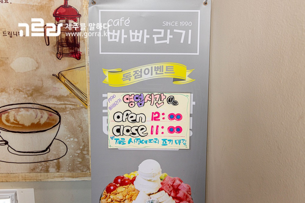빠빠라기는 제주시청점, 신제주점 두 곳에서 만날 수 있으며 사계절 빙수를 맛볼 수 있습니다. 이곳에서는 주문이 선불로 이루어지며, 포장도 가능한데요. 배달을 원한다면 손님이 퀵서비스를 이용해야 한다는 점, 메모 메모~!