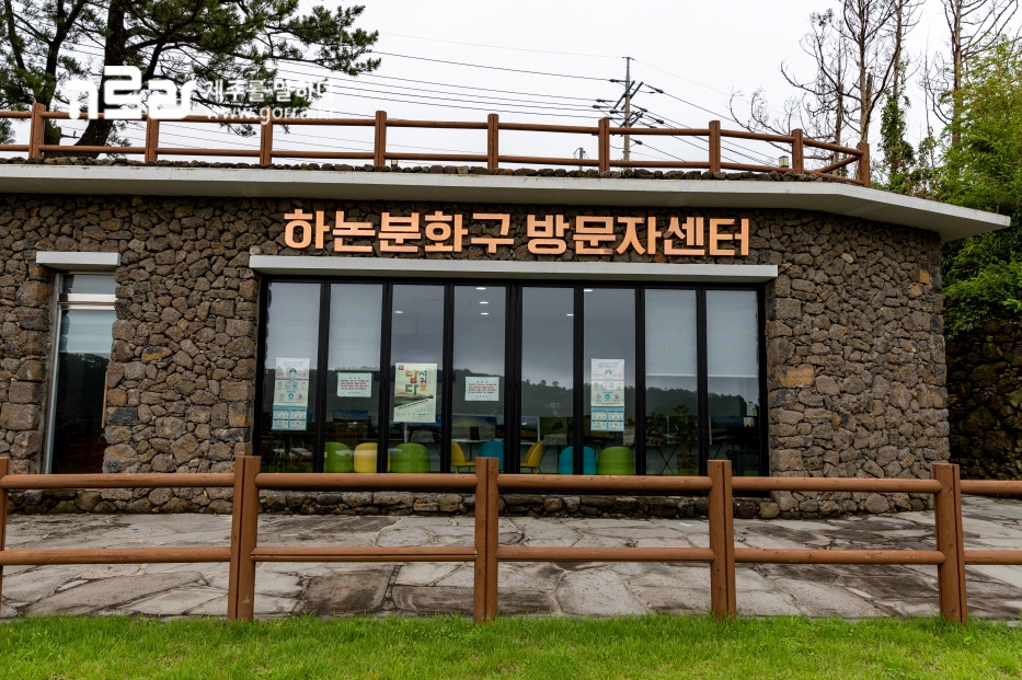 전망대 왼쪽으로 돌아가면 방문자센터가 나옵니다. 리플릿, 동영상, 사진 등으로 하논분화구에 대한 정보를 알아볼 수 있는 공간인데요. 자연 프로그램이 계절별로 운영되고, 전문해설사가 상주해 있어 보다 자세한 설명을 들어볼 수 있습니다. 지금은 코로나19 방역을 위해 출입이 불가하지만 리플릿은 요청하여 받을 수 있습니다.
